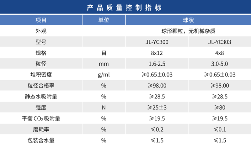 YC300/303型分子篩,主要應用在深冷空分制氧裝置上,產品有強度高,不易粉化,吸附速率快,使用壽命長等等優點。 主要應用: YC300/YC303型分子篩,主要應用在深冷空分制氧裝置上,去除原料氣中的水、二氧化碳、硫化物、及一部分不飽和烴類;實施氮氧分離,制取工業、醫用氧氣;產品有強度高,不易粉化,吸附速率快,使用壽命長等等優點。